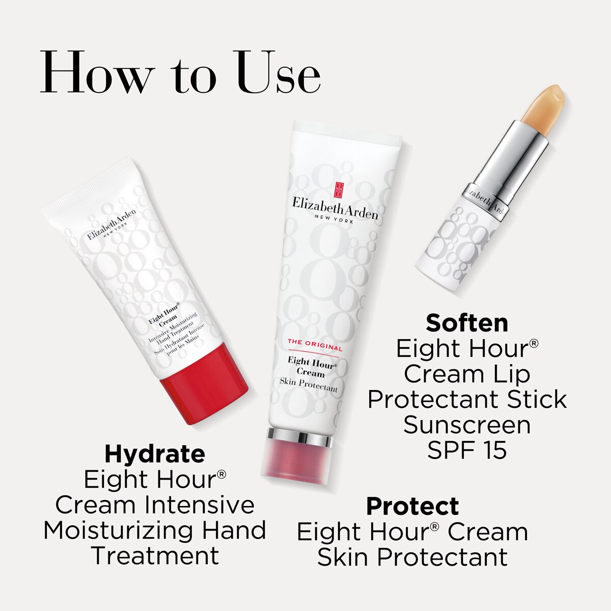 Treat your lips to the Eight Hour® Cream Lip Protectant to relieve chapping and cracking and help guard against the damaging effects of UV exposure with SPF 15.